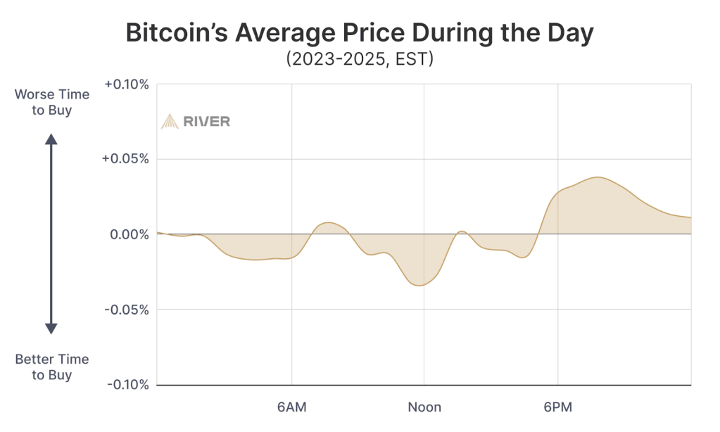 Early Friday mornings fall during a quieter part of the global trading week. U.S. markets are closed, Europe hasn’t fully opened, and many traders are reducing risk ahead of the weekend rather than adding new positions. While Bitcoin operates 24/7, Bitcoin ETFs can only be traded during business hours. The combination of these factors can lead to softer prices and fewer aggressive buyers, which helps explain why recurring buys placed at this time have, on average, been a bit cheaper.